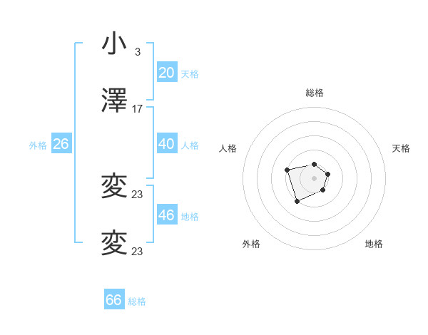 小澤 変変さんの総格は66画の1点!
