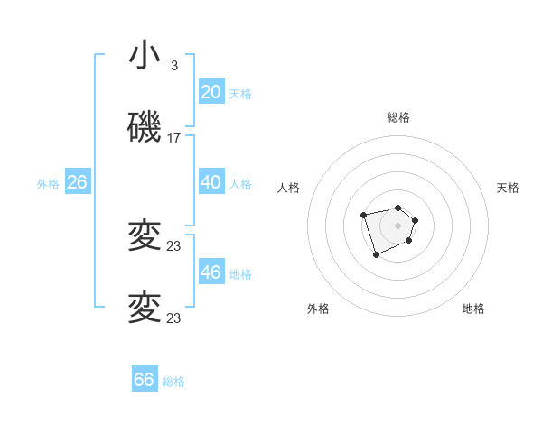 小磯 変変さんの総格は66画の1点!