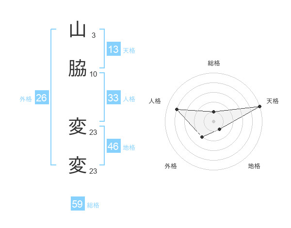 山脇 変変さんの総格は59画の1点!