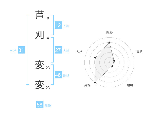 芦刈 変変さんを姓名の画数から五運を鑑定