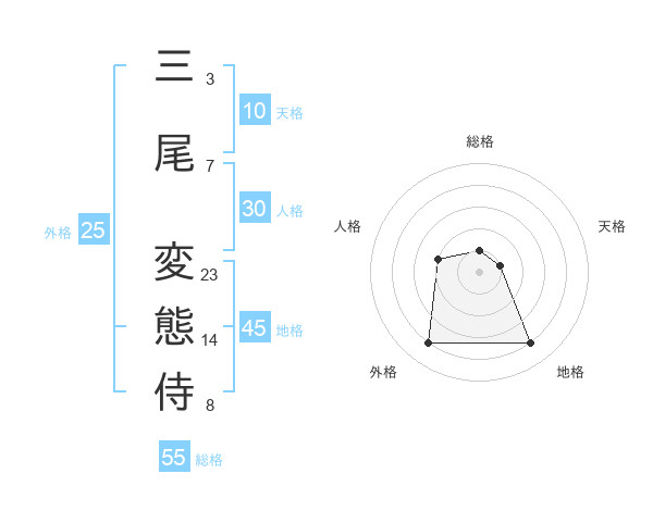 三尾 変態侍さんの総格は55画の1点!