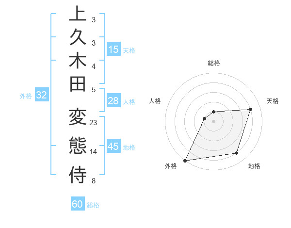 上久木田 変態侍さんの外格は32画の5点!