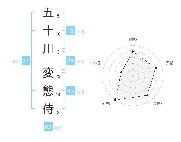 五十川 変態侍さんを姓名の画数から五運を鑑定