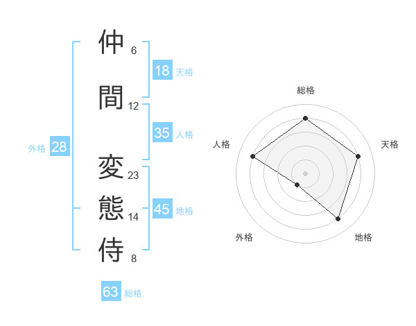 仲間 変態侍さんを姓名の画数から五運を鑑定