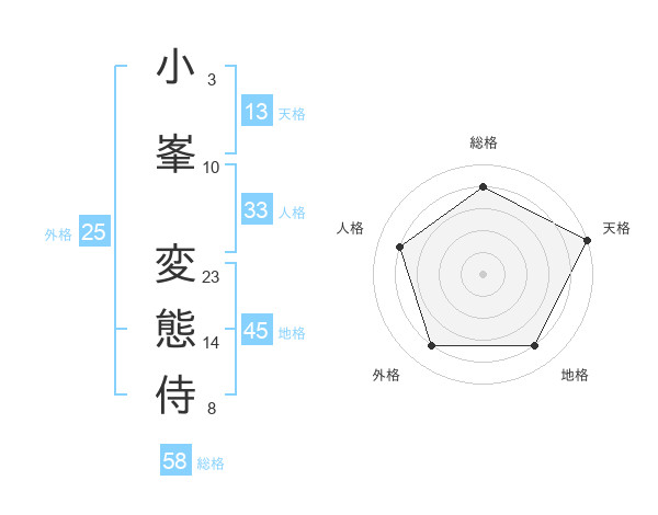 小峯 変態侍さんを姓名の画数から五運を鑑定