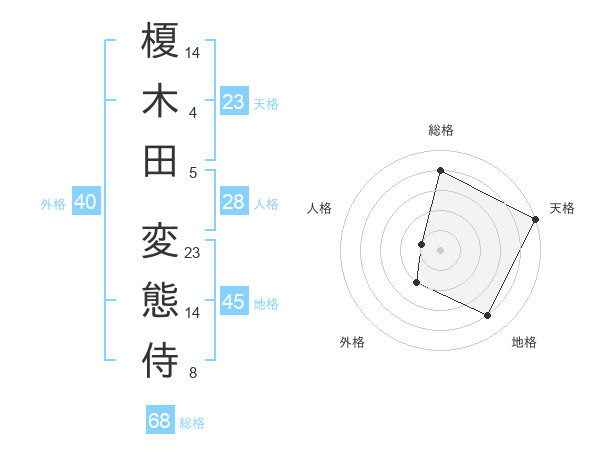 榎木田 変態侍さんを姓名の画数から五運を鑑定