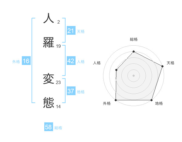 人羅 変態さんの総格は58画の4点!