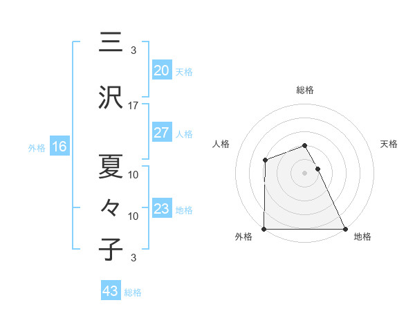 三沢 夏々子さんを姓名の画数から五運を鑑定