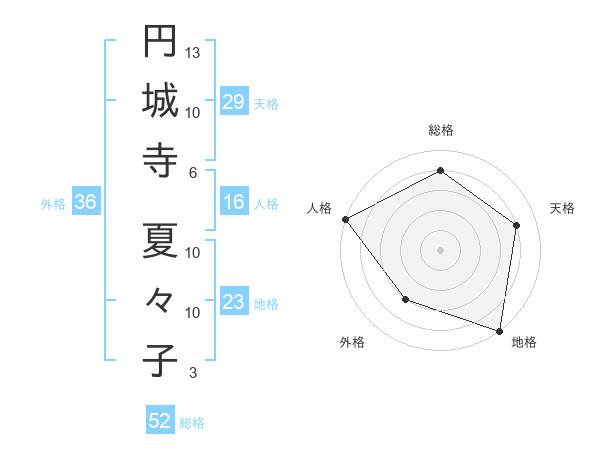 円城寺 夏々子さんの総格は52画の4点!