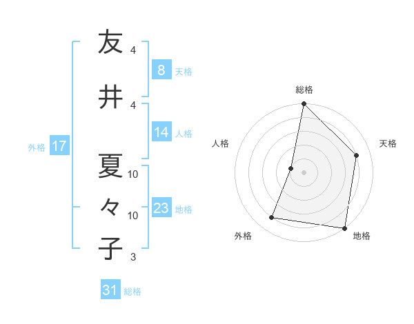 友井 夏々子さんの総格は31画の5点!