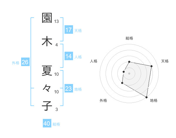 園木 夏々子さんを姓名の画数から五運を鑑定