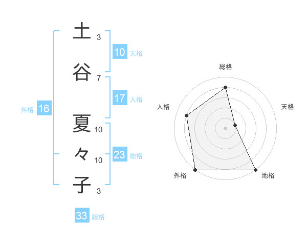 土谷 夏々子さんを姓名の画数から五運を鑑定