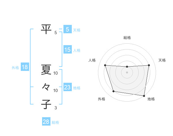 平 夏々子さんの地格は23画の5点!