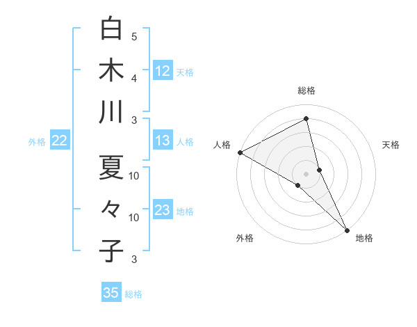 白木川 夏々子さんを姓名の画数から五運を鑑定