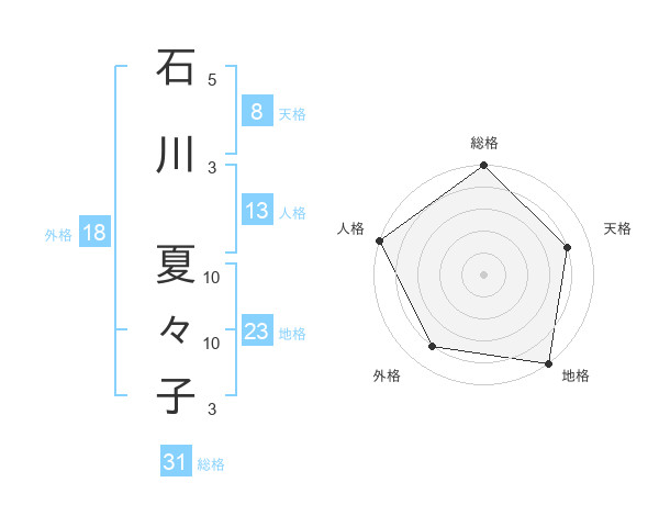 石川 夏々子さんを姓名の画数から五運を鑑定
