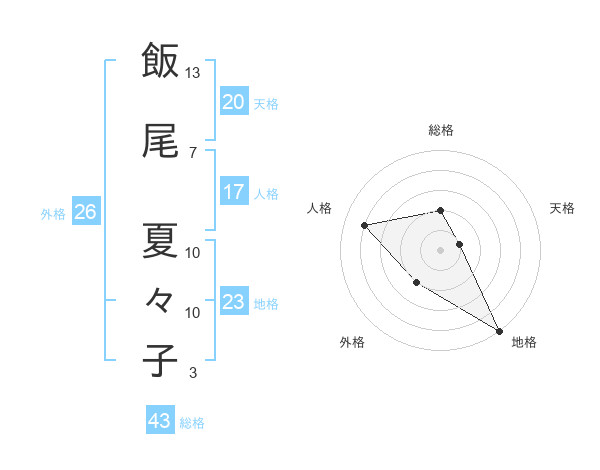 飯尾 夏々子さんの天格は20画の1点!