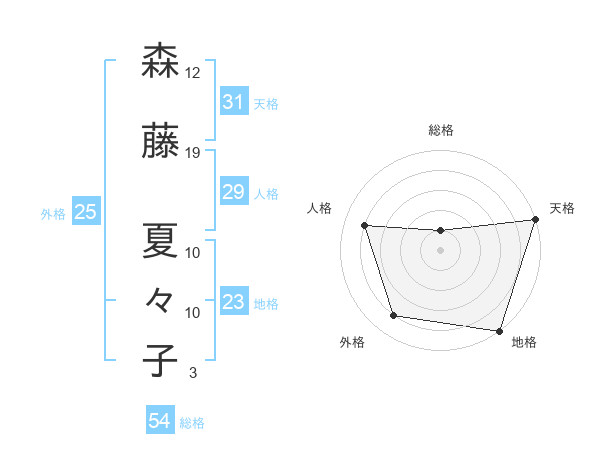 森藤 夏々子さんを姓名の画数から五運を鑑定