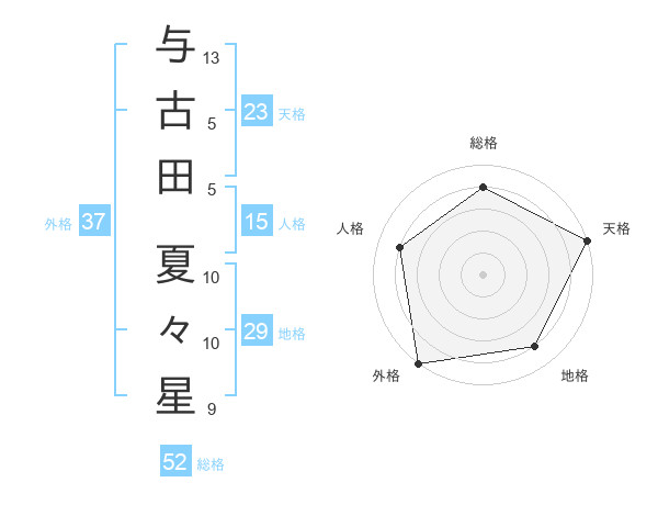 与古田 夏々星さんを姓名の画数から五運を鑑定