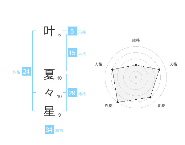 叶 夏々星さんを姓名の画数から五運を鑑定
