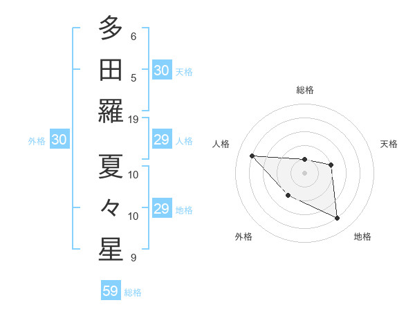 多田羅 夏々星さんを姓名の画数から五運を鑑定