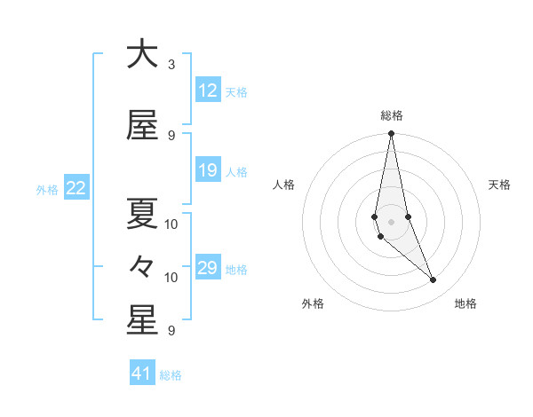 大屋 夏々星さんを姓名の画数から五運を鑑定