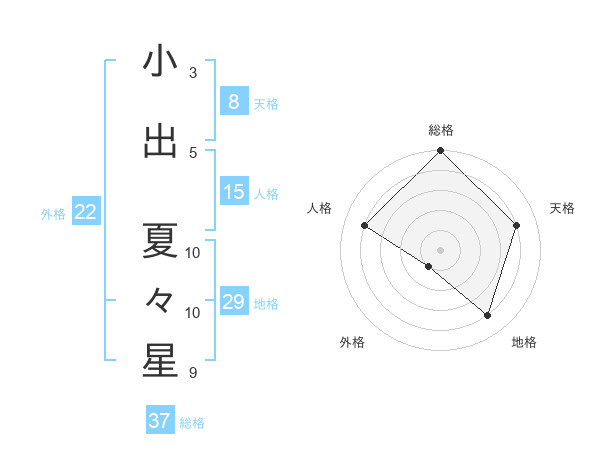 小出 夏々星さんの総格は37画の5点!