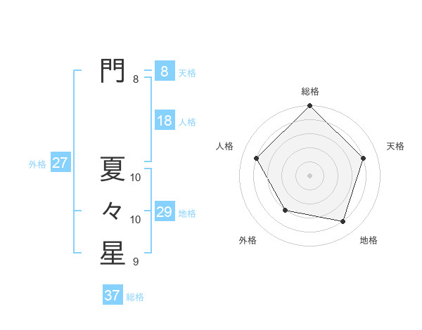 門 夏々星さんの総格は37画の5点!