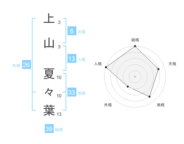 上山 夏々葉さんの総格は39画の5点!