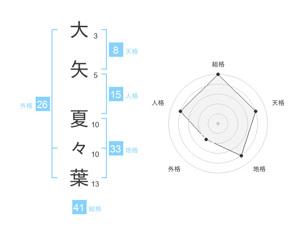 大矢 夏々葉さんを姓名の画数から五運を鑑定