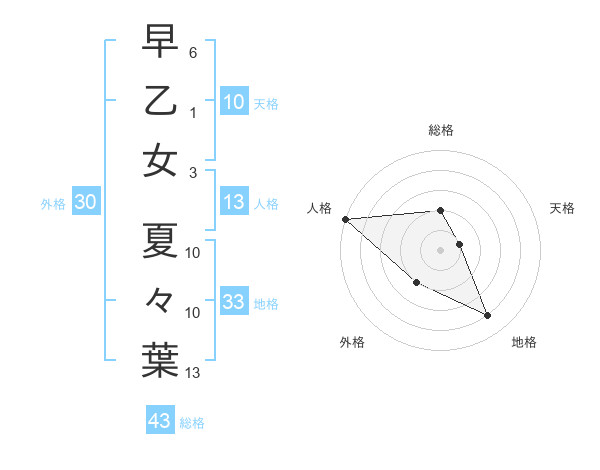 早乙女 夏々葉さんを姓名の画数から五運を鑑定