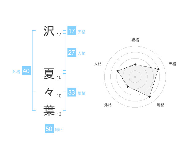 沢 夏々葉さんを姓名の画数から五運を鑑定