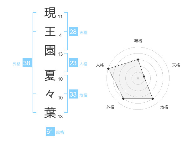 現王園 夏々葉さんを姓名の画数から五運を鑑定
