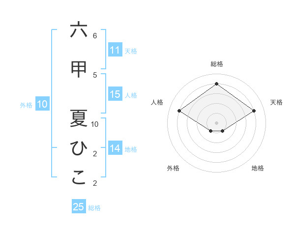 六甲 夏ひこさんを姓名の画数から五運を鑑定