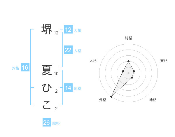 堺 夏ひこさんを姓名の画数から五運を鑑定