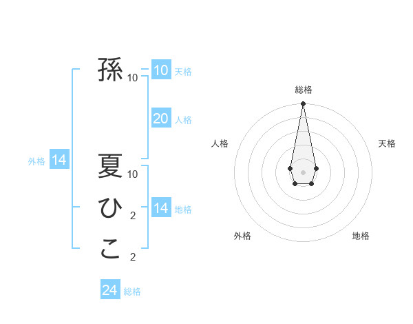 孫 夏ひこさんの総格は24画の5点!