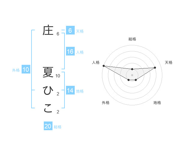 庄 夏ひこさんを姓名の画数から五運を鑑定