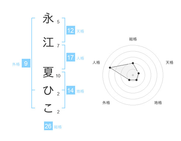永江 夏ひこさんを姓名の画数から五運を鑑定