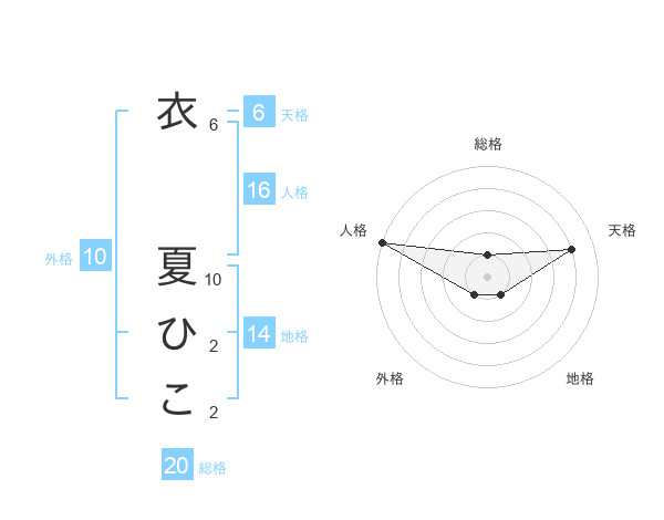 衣 夏ひこさんを姓名の画数から五運を鑑定