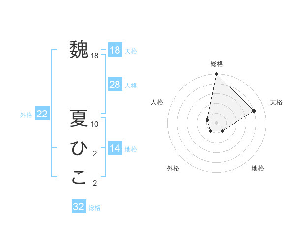 魏 夏ひこさんの総格は32画の5点!