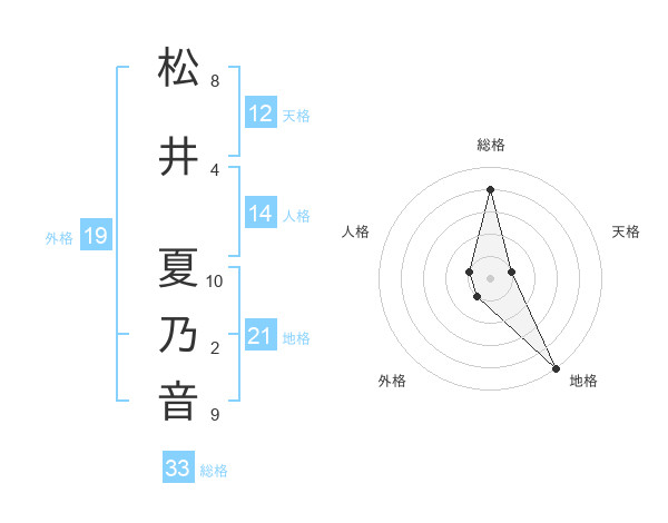 松井 夏乃音さんの総格は33画の4点!