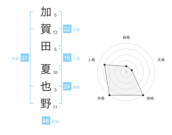 加賀田 夏也野さんの外格は31画の5点