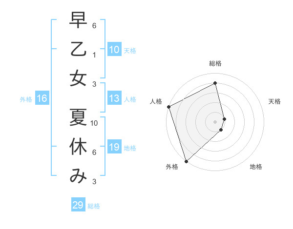 早乙女 夏休みさんを姓名の画数から五運を鑑定