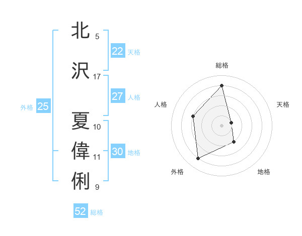 北沢 夏偉俐さんを姓名の画数から五運を鑑定