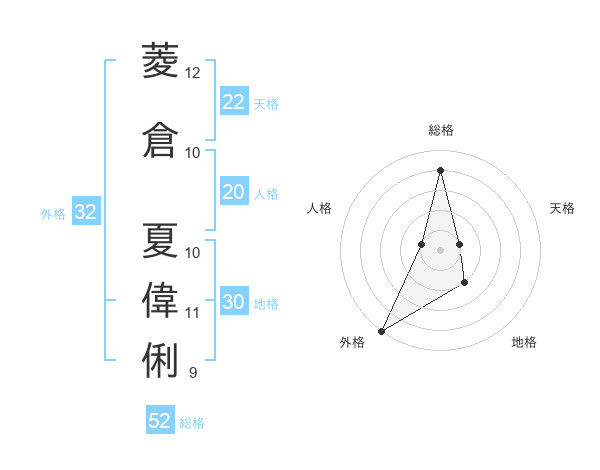 菱倉 夏偉俐さんの外格は32画の5点!