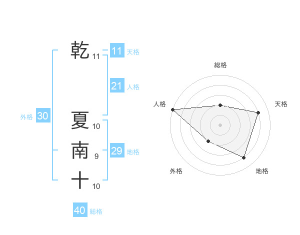 乾 夏南十さんの地格は29画の4点!