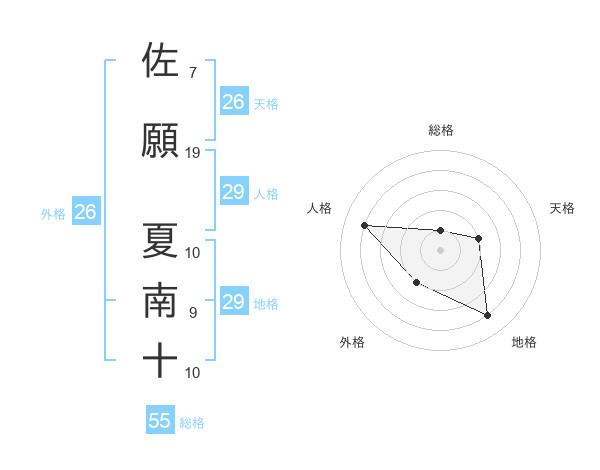 佐願 夏南十さんの人格は29画の4点!