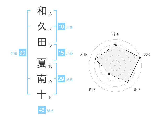 和久田 夏南十さんを姓名の画数から五運を鑑定