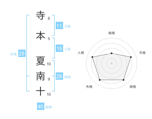 寺本 夏南十さんを姓名の画数から五運を鑑定