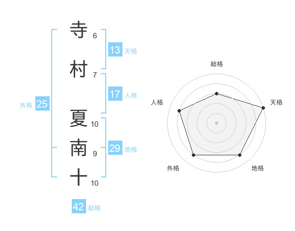 寺村 夏南十さんを姓名の画数から五運を鑑定