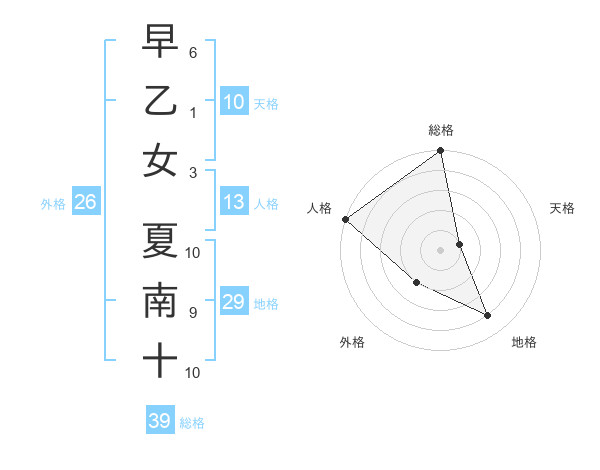 早乙女 夏南十さんの総格は39画の5点!